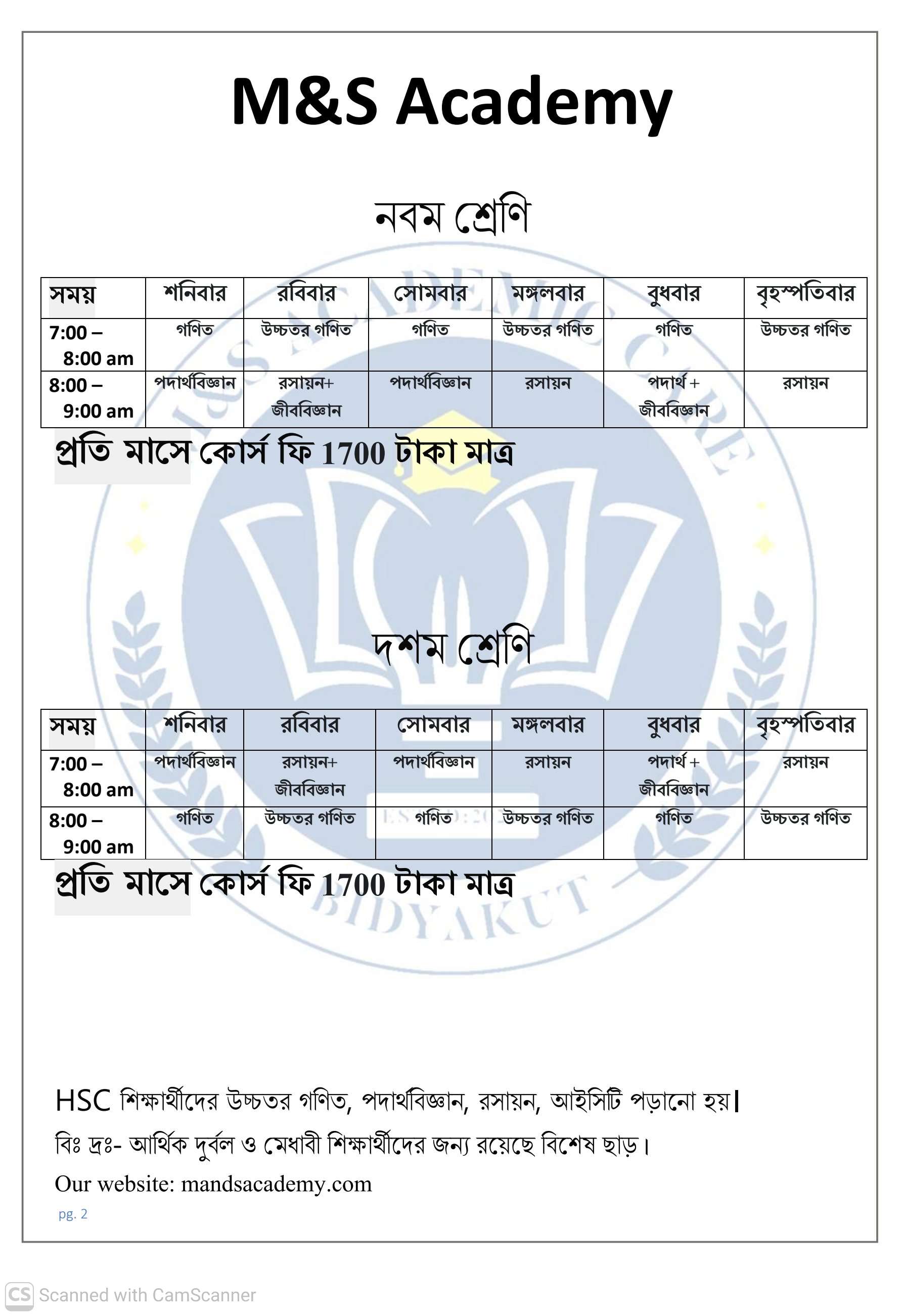 নবম ও দশম শ্রেণির ক্লাস রুটিন