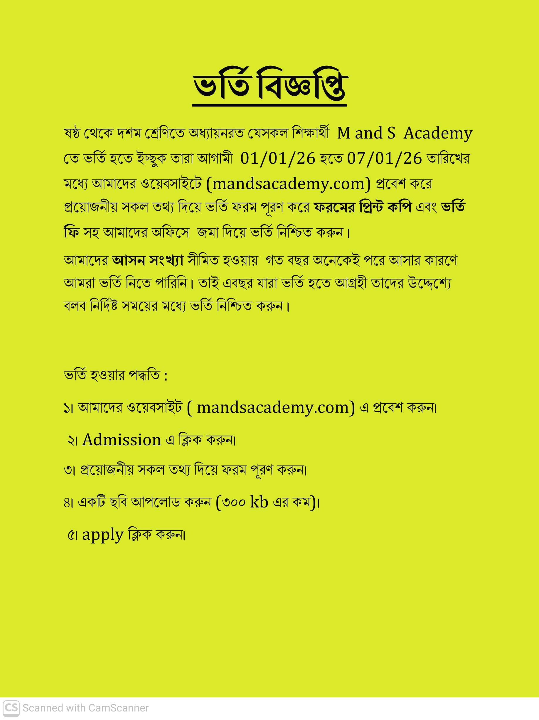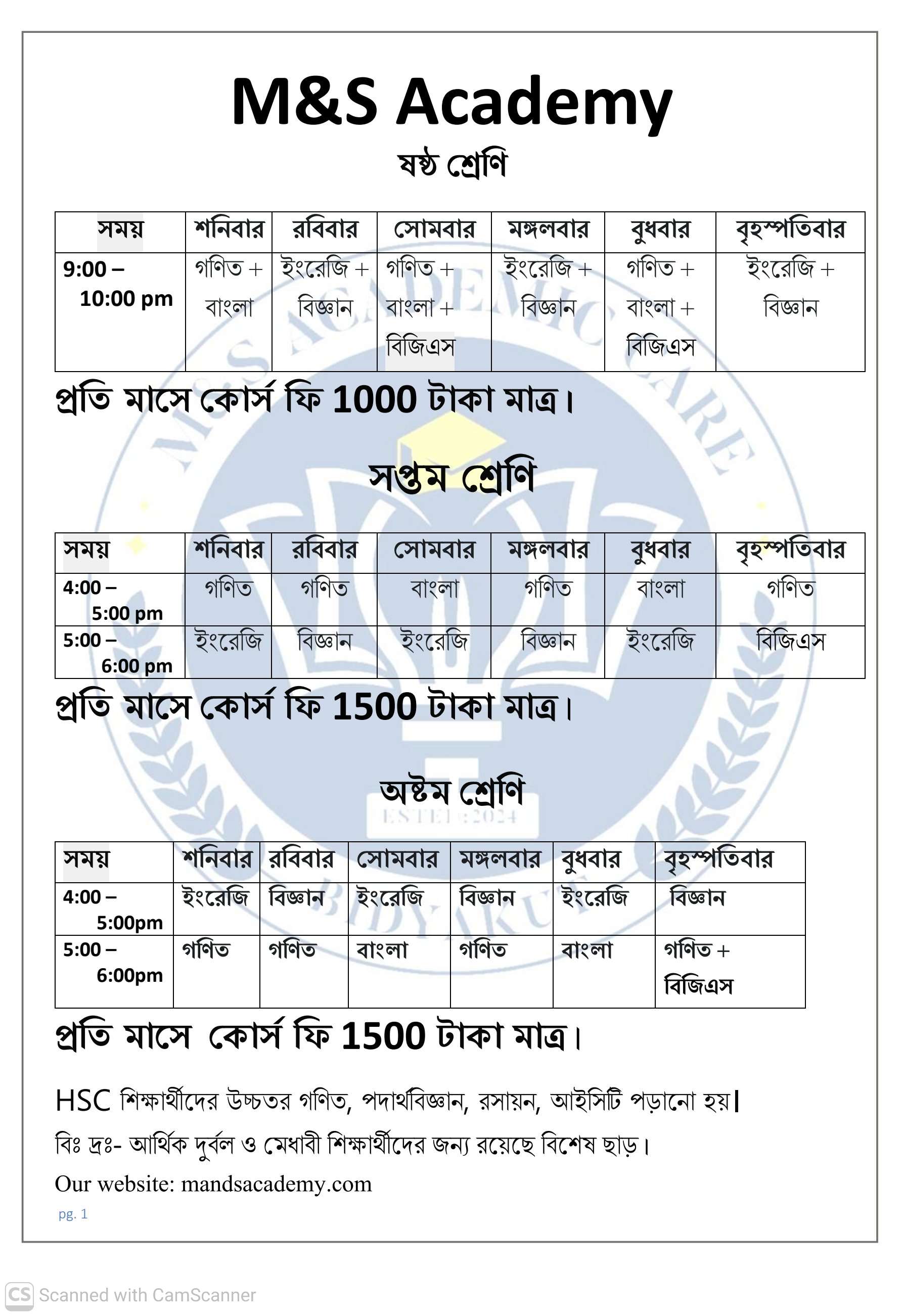 ষষ্ঠ, সপ্তম ও অষ্টম শ্রেণির ক্লাস রুটিন